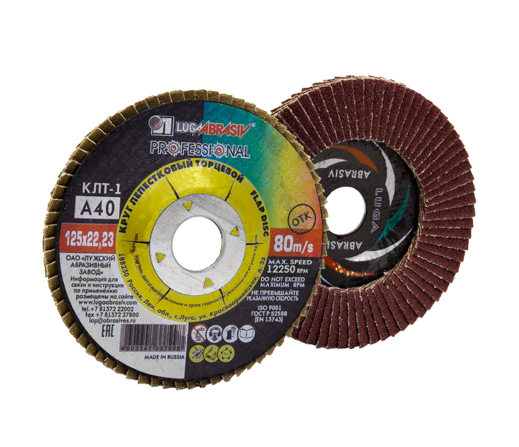 Лепестковые торцевые диски (КЛТ) от Луга Абразив с наружным диаметром 125 мм и толщиной 9 мм поставляются в упаковках по 10 шт. Цена указана за 1 шт.