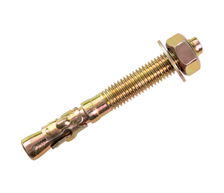 Анкер клиновой изготавливается из прочной углеродистой стали. Крепежный элемент имеет покрытие из желтого цинка для защиты от коррозии. Устойчивые к воздействию внешней среды изделия служат дольше даже в условия повышенной влажности. Диаметр крепежа составляет 12 мм, длина — 100 мм.
