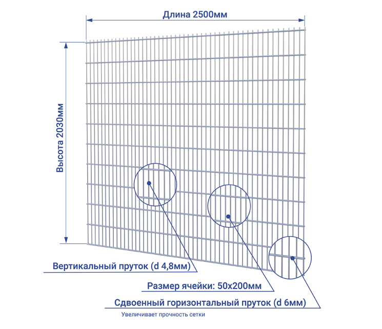 Сетка 2D заборная ОЦ 2030х2500 мм / 50х200 мм / 4,8 мм / 6,0 мм