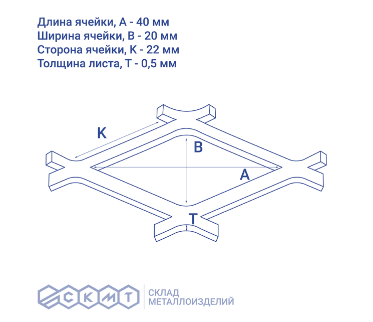 Оцинкованная цельнометаллическая сетка ЦПВС №40 представляет собой армирующее полотно с ромбовидными отверстиями размером 22х22 мм.