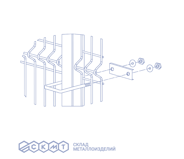 Крепеж хомут производства ООО «Склад металлоизделий» изготавливается из оцинкованной стали и предназначен для надежного крепления секционных заборов из сварной сетки, сетки рабицы или 2D/3D сеток к профильным столбам. Хомуты дополнительно покрываются порошково-полимерной краской серого цвета RAL 7024, что позволяет подобрать изделие в цвет ограждения.