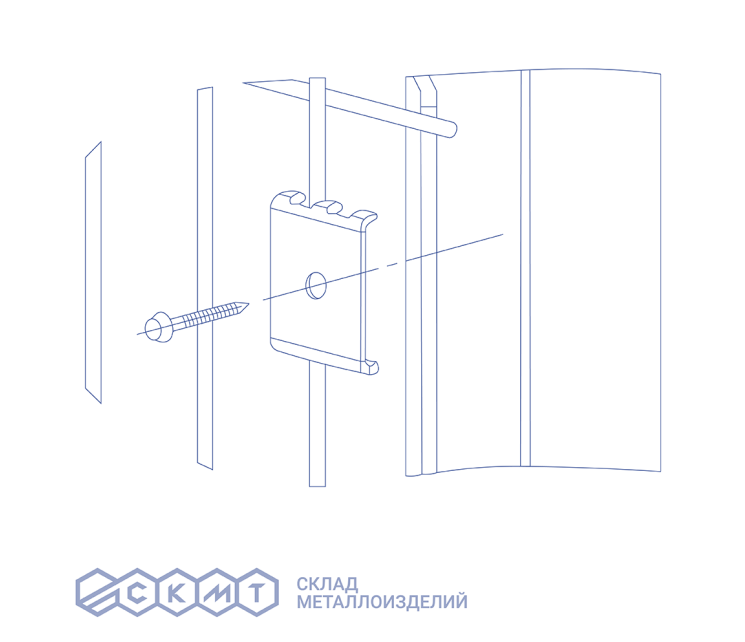 Для установки крепежа требуется предварительно просверлить отверстие в столбе, после чего скоба может быть привинчена к столбу. Для этого в комплекте идет оцинкованный кровельный саморез 4,8х29 мм с шляпкой в цвет изделия (RAL 8017).
