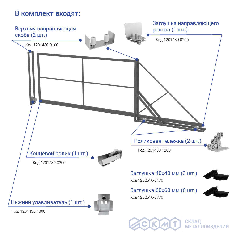 - Верхняя направляющая скоба с нейлоновыми роликами оцинкованная – 2 шт.;
