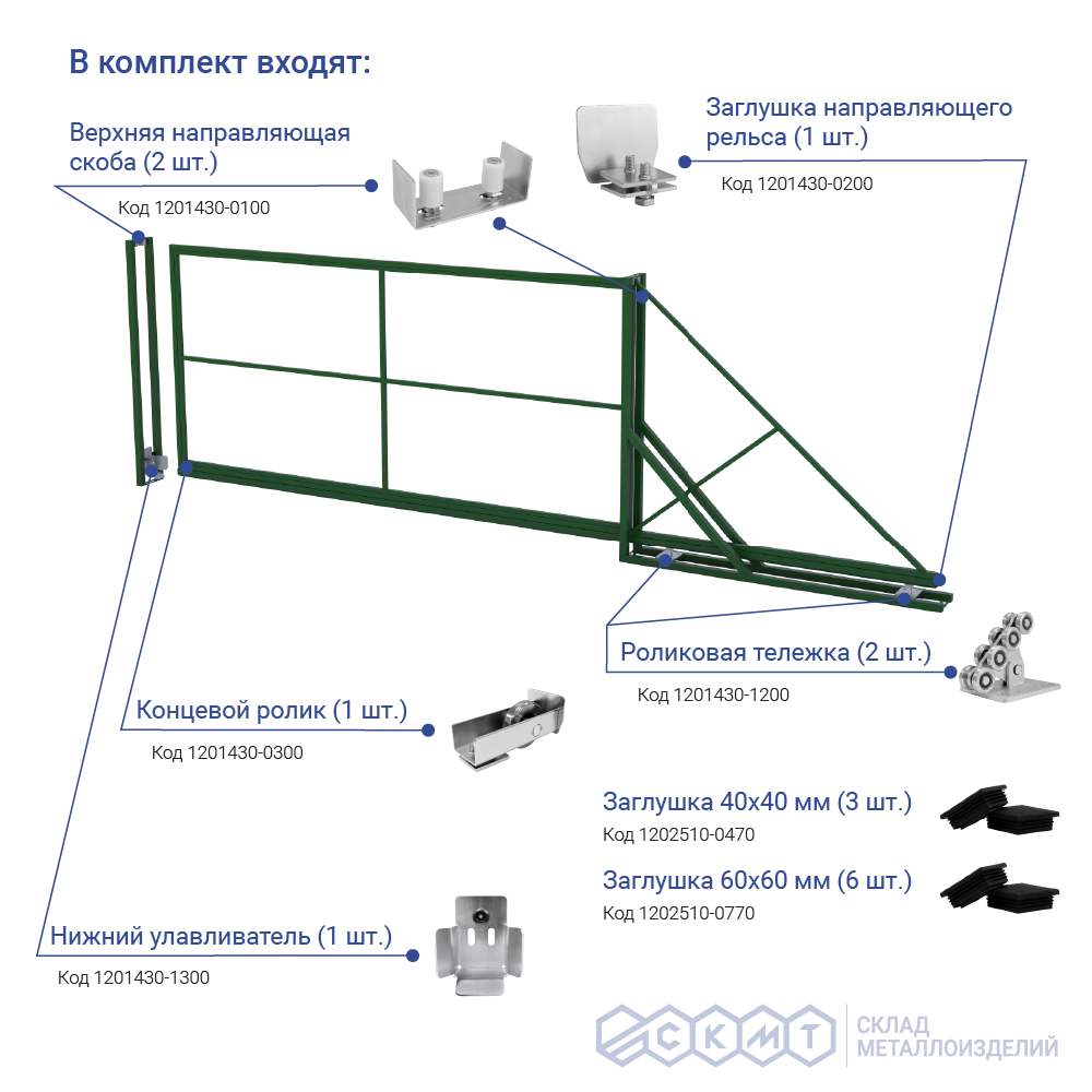 Все элементы откатных ворот выполнены из стальной оцинкованной трубы и включают:
