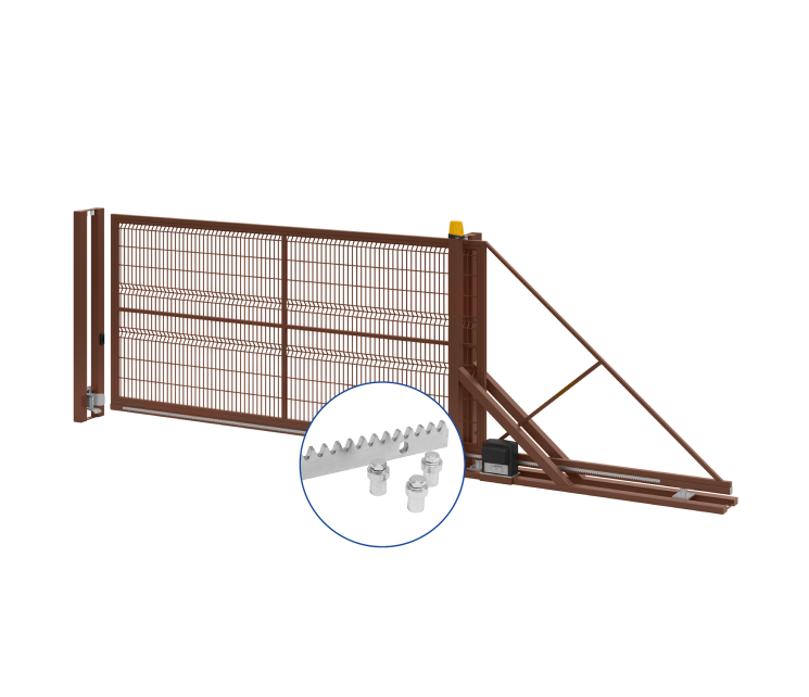 Откатные ворота с сеткой 3D под автоматику H 2,0 м L 4,0 м / грунт RAL 8017 - коричневый / открытие влево