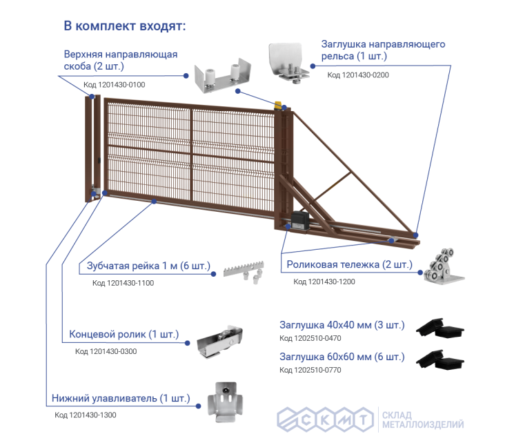 Данная модель ворот предполагает открытие влево. Также откатные ворота производства СКМТ можно дополнительно автоматизировать.