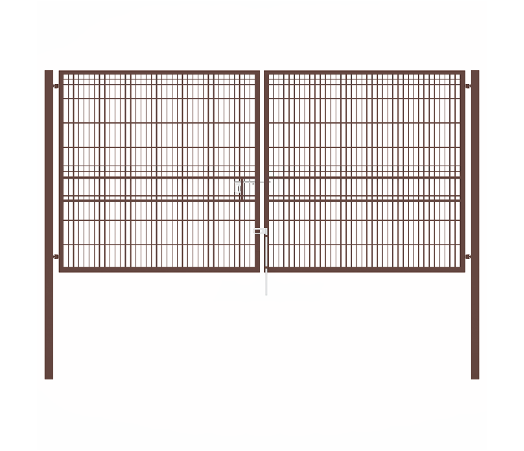 Порошково-полимерное покрытие коричневого цвета (RAL 8017) придает воротам эстетичный вид и защищает от внешних воздействий. Для заполнения каркаса используется сварная сетка 3D (диаметр проволоки – 3 мм) с полимерным покрытием в цвет изделия.