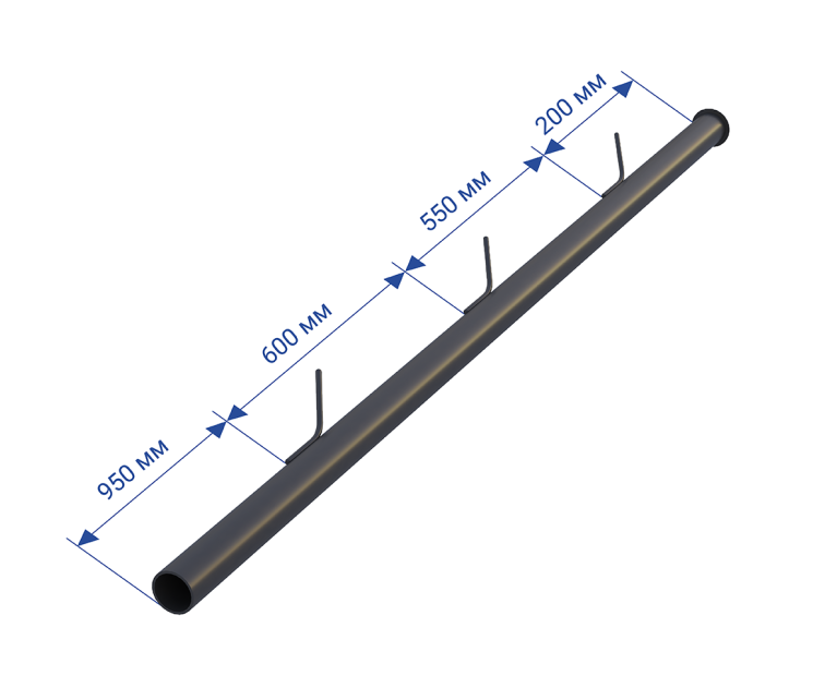 Заборный столб с усами производства ООО “Склад Металлоизделий” изготовлен из стальной трубы круглого сечения диаметром 42 мм.
