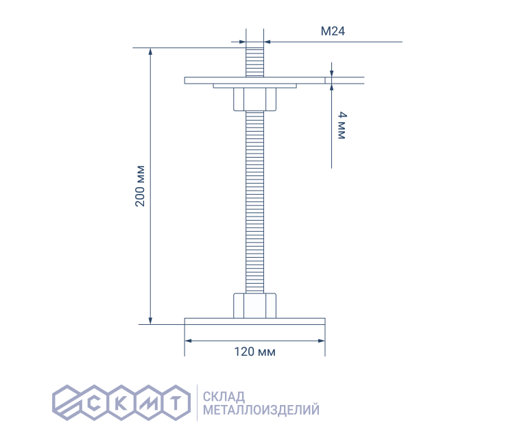 Анкер стальной регулировочный M24 H 200 мм 120х120х4 мм / цинк