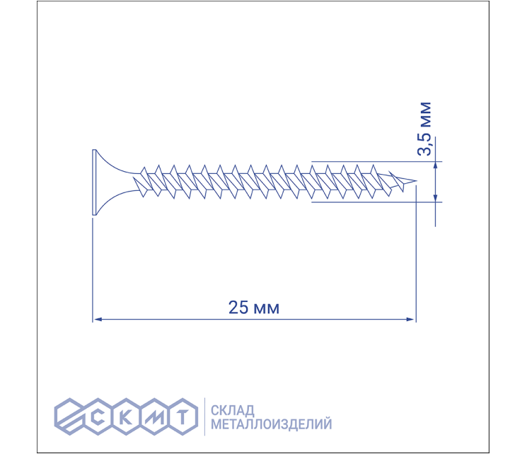Саморезы гипсокартон-металл (ГМ, ШСГМ) 3,5х25 мм с потайной головкой предназначены для надёжного крепления гипрока к металлическому основанию. Такие самонарезающие шурупы с острым наконечником применяют в строительстве, мебельном производстве и бытовом ремонте.