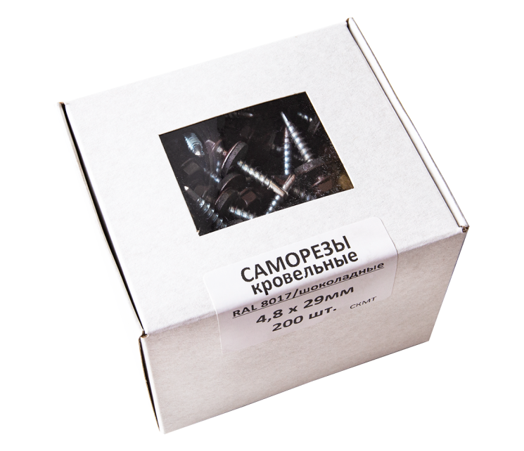 Кровельные саморезы по дереву диаметром 4,8 мм и длиной 29 мм поставляются в упаковке по 200 шт. Изготовлены по стандарту DIN 7504K. Цвет головки самореза - Шоколадно-коричневый (RAL 8017).