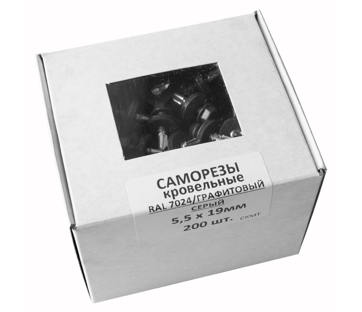 Кровельные саморезы по металлу диаметром 5,5 мм и длиной 19 мм поставляются в упаковке по 200 шт. Изготовлены по стандарту DIN 7504K. Цвет головки самореза - Графитовый серый (RAL 7024).