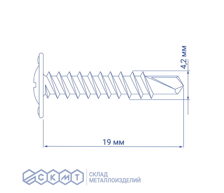 Саморезы по металлу (ШСММ) 4,2х19 мм — крепёжные изделия с прессшайбой и резьбой для соединения узлов металл-металл. Самонарезающие шурупы применяются при монтаже листового металла, профилей и тонкостенных стальных конструкций.