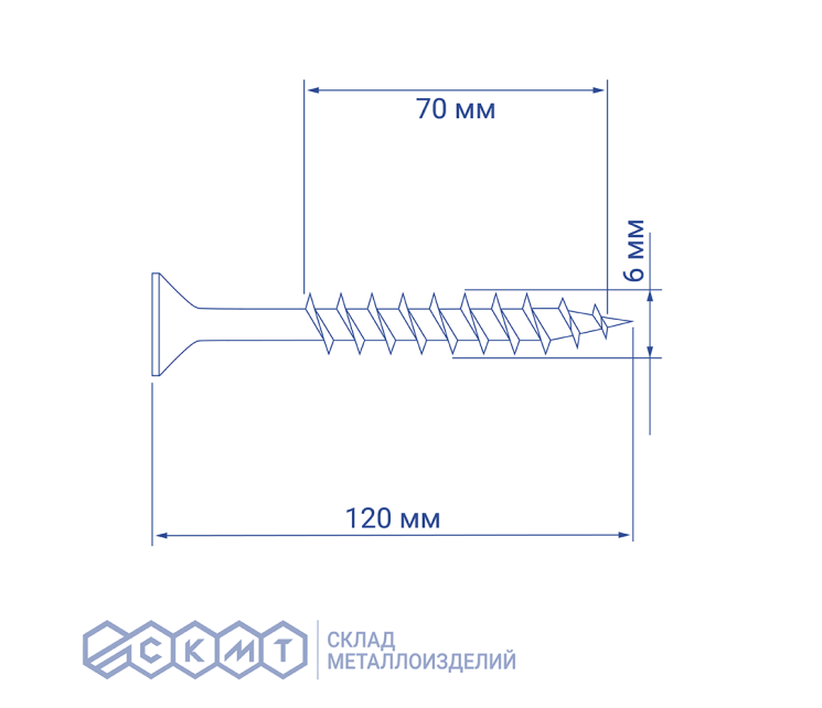 Оцинкованные универсальные саморезы диаметром 6 мм, длиной 120 мм и неполной резьбой поставляются в коробках размером 270х260х170 мм по 1000 шт.