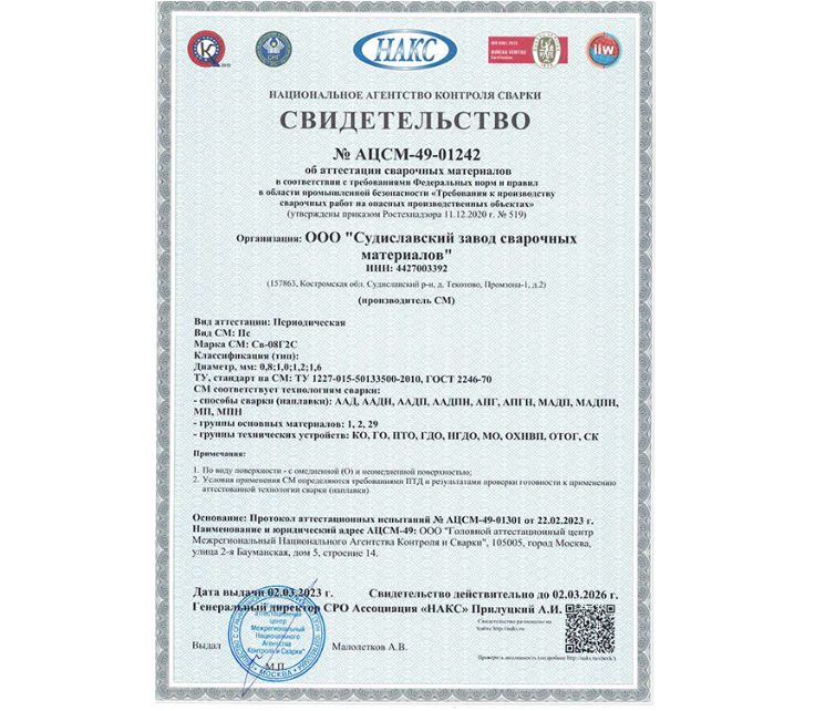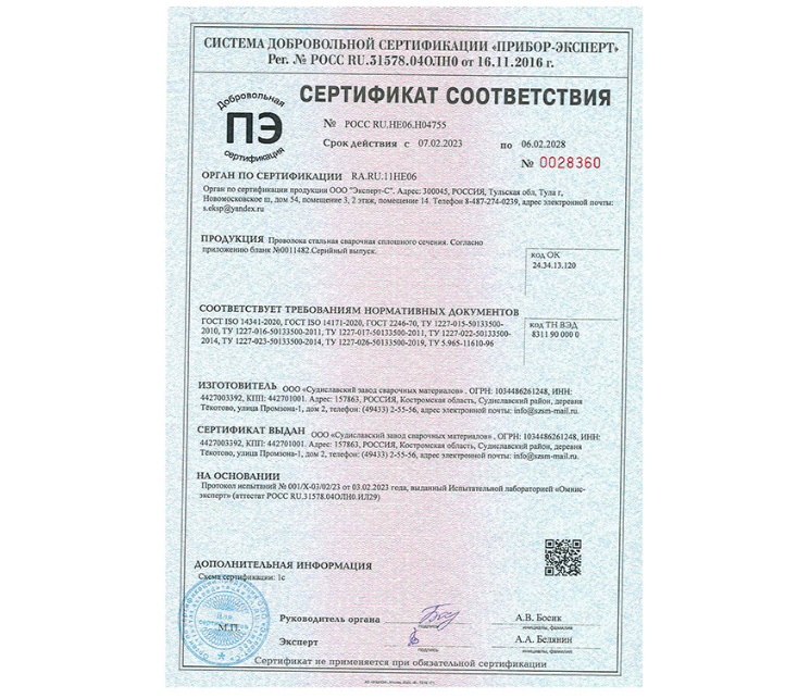 Товар поставляется в катушках Д300 весом 15 кг. Производится расходный материал типа СВ 08Г2С О Судиславским заводом сварочных материалов (СЗСМ) в России.
